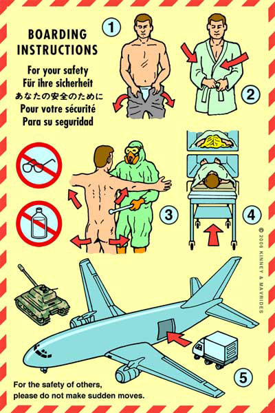 featuring the Kinney & Mavrides Boarding Instructions cartoon. Check out the Clinic Shoppe for a selection of edgy flight togs.